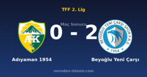 Adıyaman 1954 0-2 Beyoğlu Yeni Çarşı | Maç sonucu ve özeti